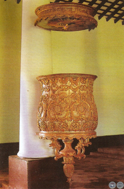 Iglesia de Capiatá: Púlpito en madera policromada.