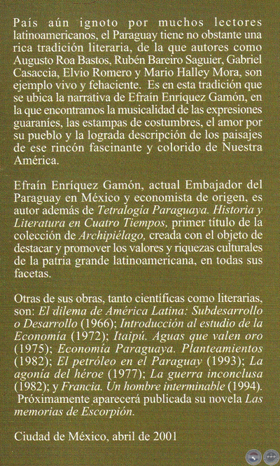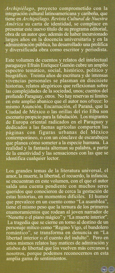 Si algún valor pudieran tener estos cuentos y relatos, más allá de su esquemática y quebradiza forma literaria, sería como cabeza de "expediente" de una prisión sin juicio legal alguno, y encontrar en ellos, si no una justificación de la permanente e incesante lucha libertaria que los paraguayos han venido librando en todo el atormentado proceso histórico de su Patria, por lo menos, un testimonio sincero de que el hombre es invencible cuando cree en Dios y posee la mínima capacidad de crear castillos de vida y de libertad en su mente y en su corazón, dondequiera que estuviese.