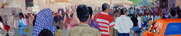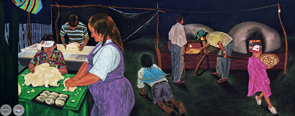 “Chipería El Peregrino” (Peregrinos) óleo sobre tela 60×150 cm 1993 | Colección privada, Paraguay
