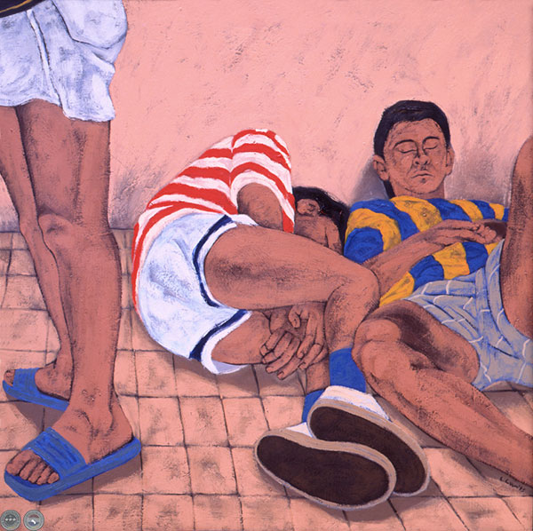 “Los tumbados” (Peregrinos) óleo sobre tela 79×79 cm 1993 | Colección privada, Paraguay