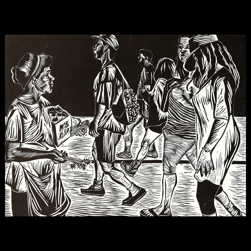 “Peregrinos V” Linografía sobre papel 15×20 cm 1993