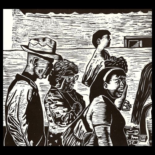 “Peregrinos IV” Linografía sobre papel 15×20 cm 1993