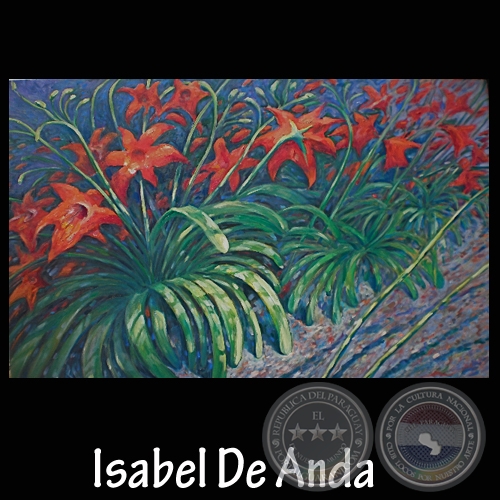 Las pinturas de Isabel expresan ímpetu y decisión, trazo tenso y nervioso, frecuentemente denso y dominante –siempre el determinante de la composición. Ágil y firme, la línea, en los trabajos de Isabel, traza con inquieta vivacidad la trama de la composición, trátese de flores o figuras.-