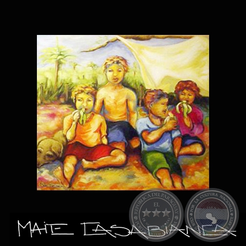 ** La obra pictórica de Maite Casabianca es esencialmente figurativa, adoptando la representación de niños en escenas de su cotidiano, temática signada por la vitalidad y espontaneidad de estas visiones. Estos retratos, cuyo punto de partida es el dibujo, organizan su sentido expresivo en torno a la condición humana fabulada a partir de un relato sobre la niñez y la experimentación del mundo.