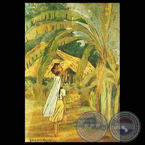 Tema: PAISAJE CON RANCHO, AGUATERA Y BANANOS