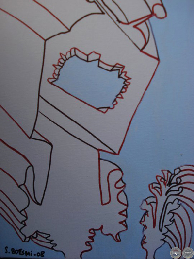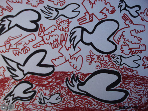 “En esta colección de pinturas me propuse crear "otras" obras, digo otras porque no creo en los "estilos" de representación. No creo en ellos simplemente porque me aburren, y en el peor de los casos, hacen que el que ve arte, se aburra. Creo que un artista debe investigar las posibilidades de su propio lenguaje y proponer no precisamente obras "lindas", sino obras con ese sentido crítico que solo se hace visible por medio de la coherencia entre el artista y sus intenciones. Creo también que los artistas deben preocuparse por las artes plásticas y por la identidad visual. Y formarse, investigar, y por sobre todo, crear. Crear para los demás”.