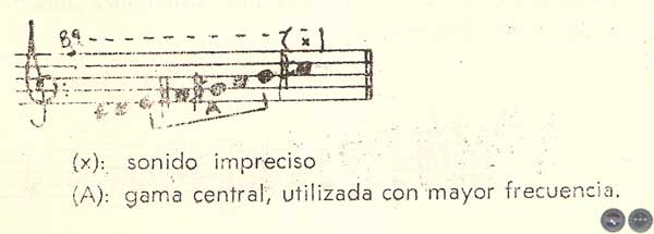 — En cuanto a la altura del sonido, señalamos que por razones prácticas y con el deseo de facilitar su lectura y comprensión, hemos optado por escribirla una octava más grave, de manera que quede visible dentro del pentagrama.