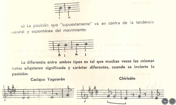 — Conviene considerar antes que nada que la escritura musical nos permite reflejar con precisión solamente dos dimensiones: la altura del sonido y el ritmo, ya que la tercera dimensión —el timbre— que tiene relación con el color, y la cuarta —la dinámica— con la expresión, están limitadas por la falta de signos precisos que indiquen estos aspectos, salvo los escasos signos de expresión. Estos dos últimos factores son importantísimos en la música de cualquier latitud.