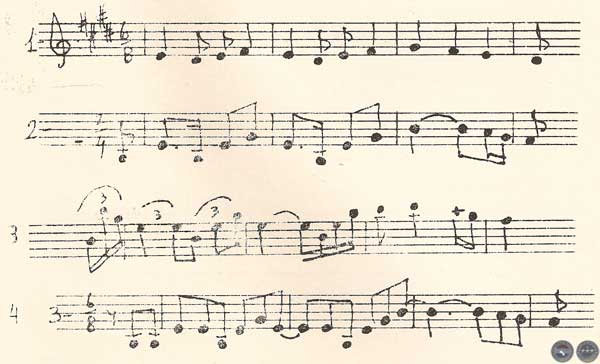 El valor de estas melodías está estrechamente vinculado a la presencia en un grado elevado de los motivos que fundamentalmente son de carácter rítmico. De ahí la ausencia total —salvo en los fragmentos finales — de notas prolongadas y pasajes melódicos autónomos.