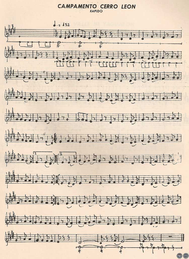 Estas dos composiciones tienen en líneas generales una visible relación con las versiones normalmente difundidas. Como un dato curioso ofrecemos cuatro versiones de una frase determinada de "Campamento Cerro León": la primera corresponde a la versión de los Peteke, la segunda es una recopilación y escrituración realizada por Nicolino Pellegrini en 1912 (esta versión amoldada al gusto extranacional recibió el apelativo de "A lo gringo" por la ausencia total de sus características fundamentales), la tercera es una recopilación de Aristóbulo Domínguez en 1929 y la última, la versión más "popularizada".