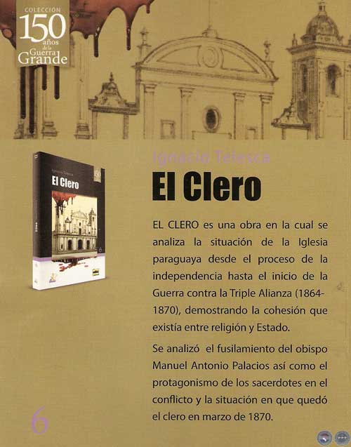 El doctor Ignacio Telesca, uno de los más destacados investigadores contemporáneos sobre la historia paraguaya ha desplegado sus conocimientos y estudios sobre la Iglesia paraguaya en el siglo XIX para permitir a los lectores comprender la situación en la que se encontraban los eclesiásticos paraguayos antes, durante y después de tan tremendo conflicto.