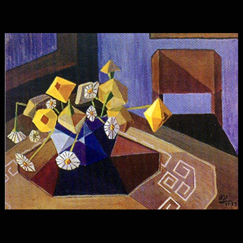Al poco tiempo, la pintura de Olga nos muestra versiones -tardías y filtradas por la “geometría sensible” de versión brasileña o rioplatense- de algunos de los “ismos” europeos (“Paisaje cubista”, “Flores amarillas”). La artista para entonces ya había recibido -a través de las enseñanzas de Ofelia Echagüe Vera primero y de Joao Rossi más tarde- ese “algo diferente”, aquel “fluido vibrante” que señalaba los dos nuevos caminos de la plástica contemporánea; hacia lo formal uno, el otro hacia lo expresivo.
