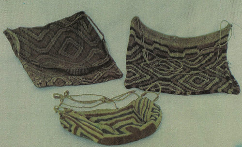 Las pequeñas bolsitas de lana abundan entre todos los chaqueños que adoptaron el tejido de lana; su modelo antiguo constituyen las bolsitas trenzadas con fibras de caraguatá y adornadas con plumas de pájaros. Las usaban los hombres en ocasiones festivales. Predominan las bolsitas de lana roja. En la parte inferior corren hileras de flequillos y para mayor realce ornamental cosen abalorios, con la misma tendencia de manifestar "la posesión de cosas".