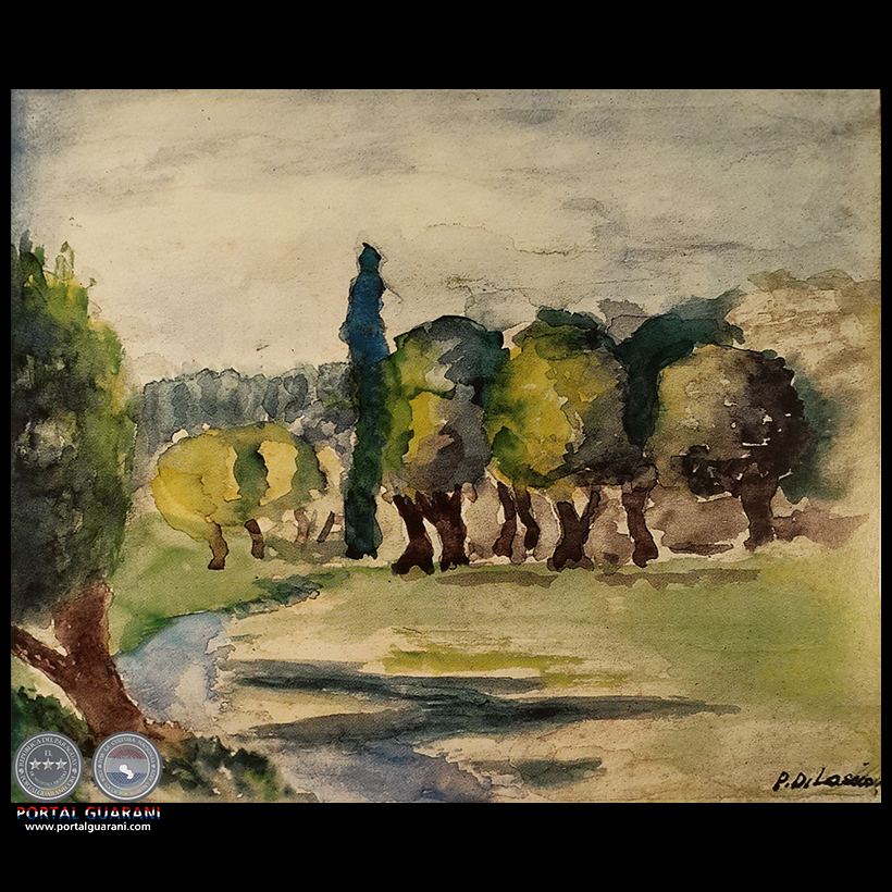 PEDRO DI LASCIO (1910 - 1978) pintor paraguayo. Estudió con JAIME BESTARD y JOAO ROSSI en los primeros años de la década del 50 y muy pronto empezó a exponer sus obras regularmente, tanto en Asunción como en exposiciones internacionales, entre las cuales destacan la II Bienal de Córdova, la VII Bienal de San Pablo y la Bienal del Grabado de Buenos Aires en 1970.