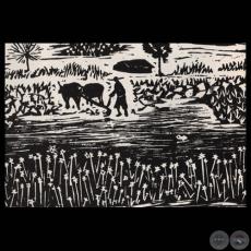 CA’API JHAPE / BEI DER FELDARBEIT - Grabado de JACINTO RIVERO