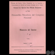 MINISTERIO DEL INTERIOR, 1968 - Mensaje Pdte. ALFREDO STROESSNER
