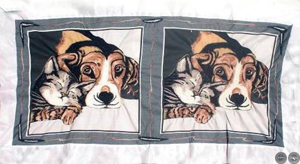 La aguja atraviesa ese motivo y convierte el bordado, un trabajo que debería ser primoroso, en un campo de batalla de hilos entrecruzados, de pespuntes furiosos. Las figuras que deberían ser dulces se vuelven extrañas, una flor muestra su posibilidad de fiera, la cara apacible de una Barbie se convierte en un rostro maldito, la muñeca muestra, así, un lado pérfido.