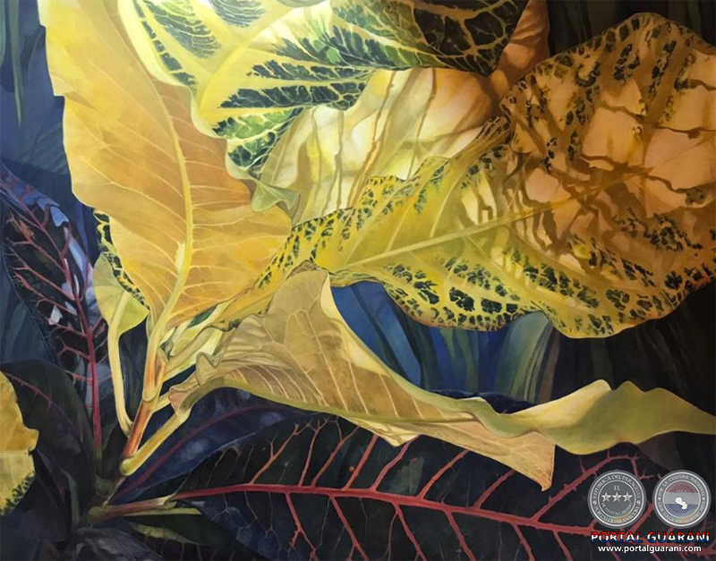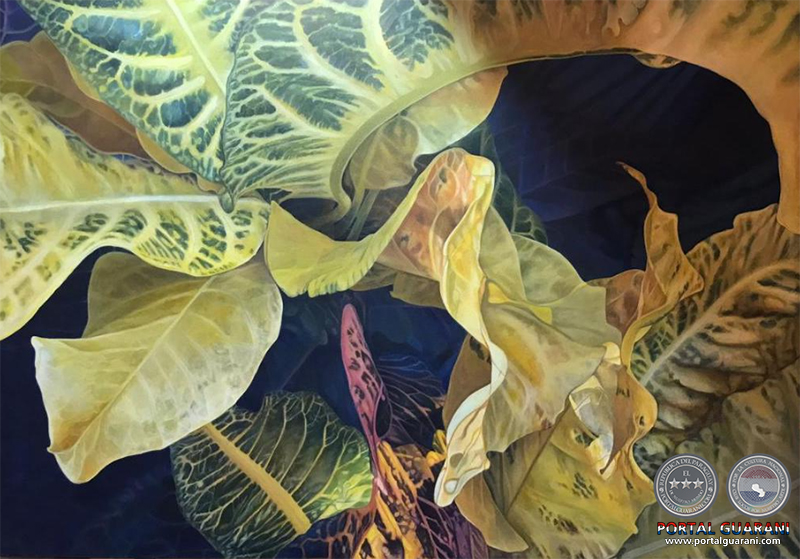 No se trata de un ejercicio, en sentido estricto, ni de una práctica paralela, sino de un movimiento hacia adentro, fuera del tiempo, que busca detenerse en la sensualidad del color y los antojos de la luz, el devenir de la línea y el peso o la liviandad de la atmósfera. La reflexión es desplazada, provisionalmente, por la atención a las demandas retinianas, los efectos del ambiente sobre el cuerpo y los quehaceres de la puesta en imagen, desplazada siempre por los requerimientos del oficio, la mediación de la técnica y la espontaneidad del trazo o la mancha. Ahora la artista observa y expresa hojas propias del jardín paraguayo, aunque sean oriundas de regiones ajenas. Las considera detenidamente, traza un cuadro que permite aislar el canto de ciertas hojas y el juego de nervaduras, fondos y tonos: una ventana que define provisionalmente las pequeñas escenas de la representación. Estos juegos, encarados con seriedad minuciosa, quizá sigan activando la reflexión, pero de manera no consciente, si cabe esta figura; desde otros lugares y otras formas de pensar; pensar visualmente, táctilmente.