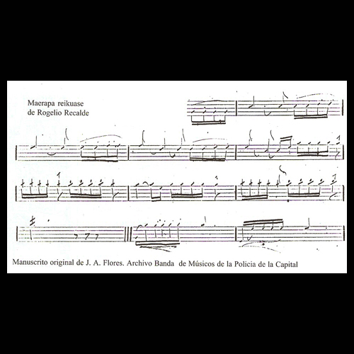 Flores experimentó con la polca, MAERAPA REIKUASE de ROGELIO RECALDE, tocándola con movimientos lentos -para facilitar su lectura- con los músicos de la Banda de la Policía de la Capital. De este modo encontró un camino para nuevas formas de expresión.