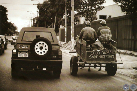Juan Ramón sube de un salto a la carreta. León y Pancho la estiran lentamente. El padre levanta una piola atada a un palo y golpea levemente a Pancho. El trote se hace algo más veloz. Para adelante, asfalto y sol. Me quedo parado haciéndoles las últimas fotos. Luego las miro y hay una que es perfecta. Perfecta para Juan Ramón. La carreta, las siluetas, los caballos y el sol. Juan Ramón convertido en un Gary Cooper asunceno. Quiero correr para mostrarle pero ya están muy lejos. La guardo. La próxima vez que me encuentre con él voy a poder mostrarle una foto que le guste.