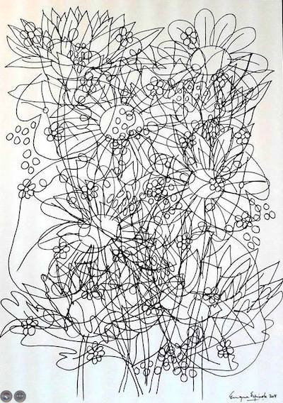 “Flora” plasma de la mano del artista la potencia del dibujo y brinda pureza y honestidad visual para quien se deje atraer por el poder oculto de la línea.