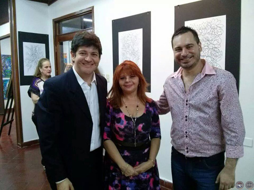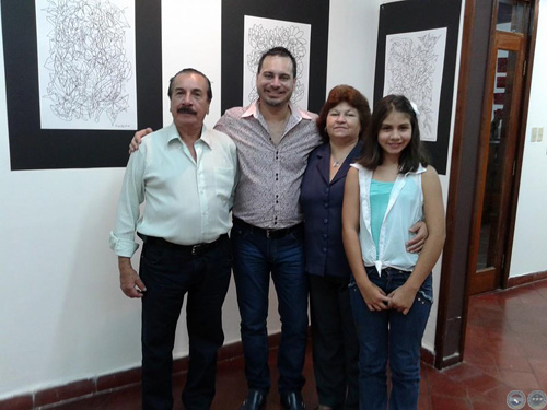 Enrique Espínola acompañado de su familia, Exposición Flora, Galería MultiArte, 2014