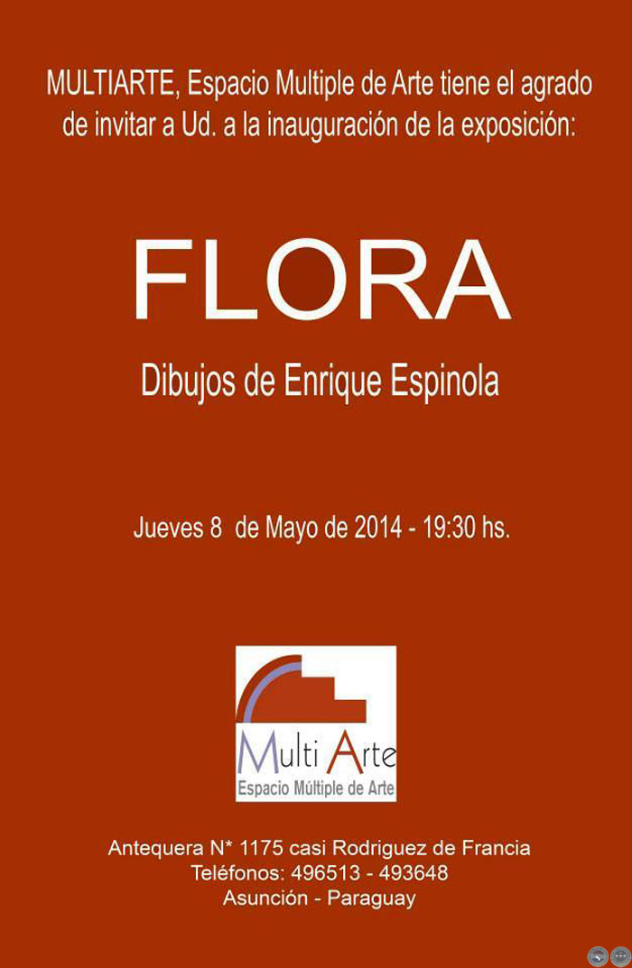 El jueves 8 de mayo a las 20 hs. se inauguró la muestra del artista visual Enrique Espínola en la galería MultiArte (Antequera Nº 1175 casi Rodríguez de Francia). La muestra estuvo habilitada hasta el viernes 30 de mayo.