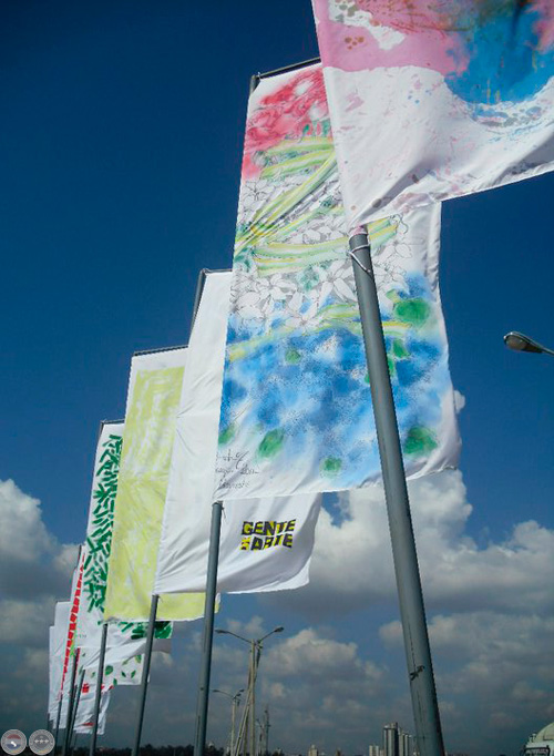 Intervención urbana con Banderas de Gente de Arte, en la que más de 50 artistas plásticos contemporáneos expondrán 100 banderas inspiradas en el Bicentenario de la patria.