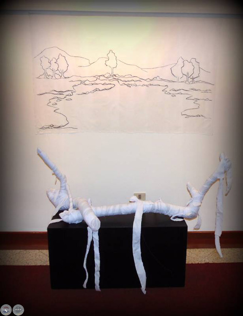 Dibujo con carbón orgánico sobre lienzo, tronco vendado