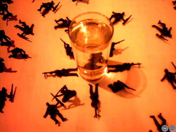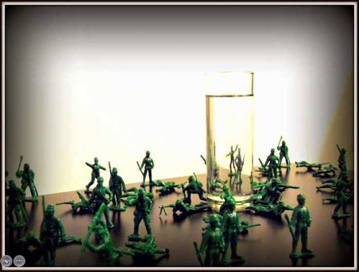 SOLDADITOS DE PLÁSTICO Y VASO DE AGUA