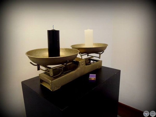 "PUNTOS DE VISTA". Balanza, velas, cerillos.