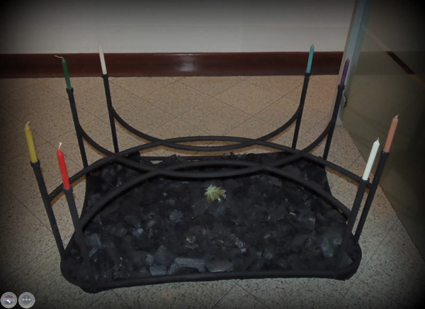 "INTERFASE" Instalación. Estructura de hierro, Carbón, planta, velas.