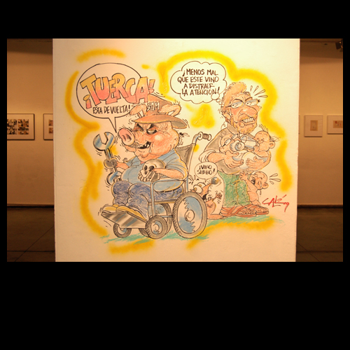 Además de los dibujos montados en paneles, se ocupan las paredes con intervenciones de los propios artistas. Esta actividad tiene dos facetas, la previa para caricaturas y dibujos de los participantes, y la que se realiza en el momento de la inauguración, a cargo del público, apartir de varios pretextos, como dibujar un guión ya escrito en la pared, o dibujar personajes determinados, etc. Esto da motivos a entrega de premios y reconocimientos, como el que realizó Robin Wood en ocasión anterior