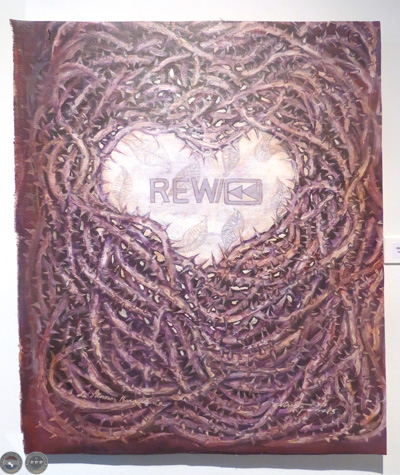 Celso Figueredo se mantiene en el desapego relacionándolo al tema y trabajando con materiales de desechos de la sociedad de consumo, trata de proteger la abundancia en sus cajas-objetos rodeados de espinas y en sus obras bidimensionales, el collage y el pixelado nos inducen a pensar en la fragmentación y multiplicación de la imagen.”