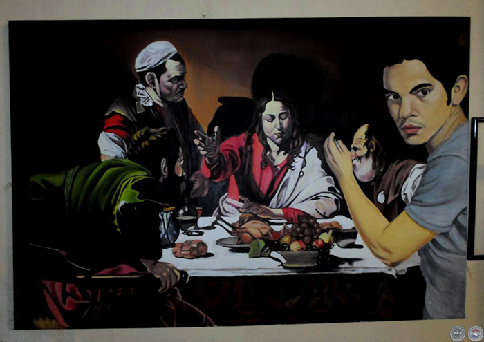 ESTUDIANDO A CARAVAGGIO, 2015 - Óleo de NICOLÁS MONGELOS MARTÍNEZ