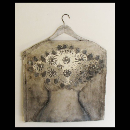 Ofelia Fisman en esta elección descorre el velo traspasando la realidad para adentrarnos en ese mundo onírico, el de los sueños, con todo ese simbolismo tan bien estudiado por Freud, dándole forma así a esta muestra con técnica mixta; con materiales que ella tan bien maneja, exaltando las texturas de los tejidos encajes y objetos entre mezclados con la pintura sobria en color que nos transporta a ese mundo de Ofelia y también de ella misma, imbricando elementos de su propia vida y cultura hilvanados bajo un mismo concepto.