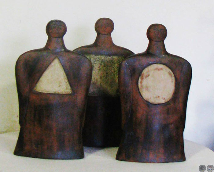 "LOS PACHAS" son androgenos, madre-padre tierra. Cerámica con engobes y óxidos.