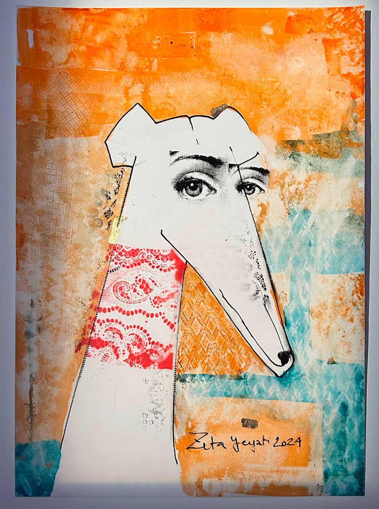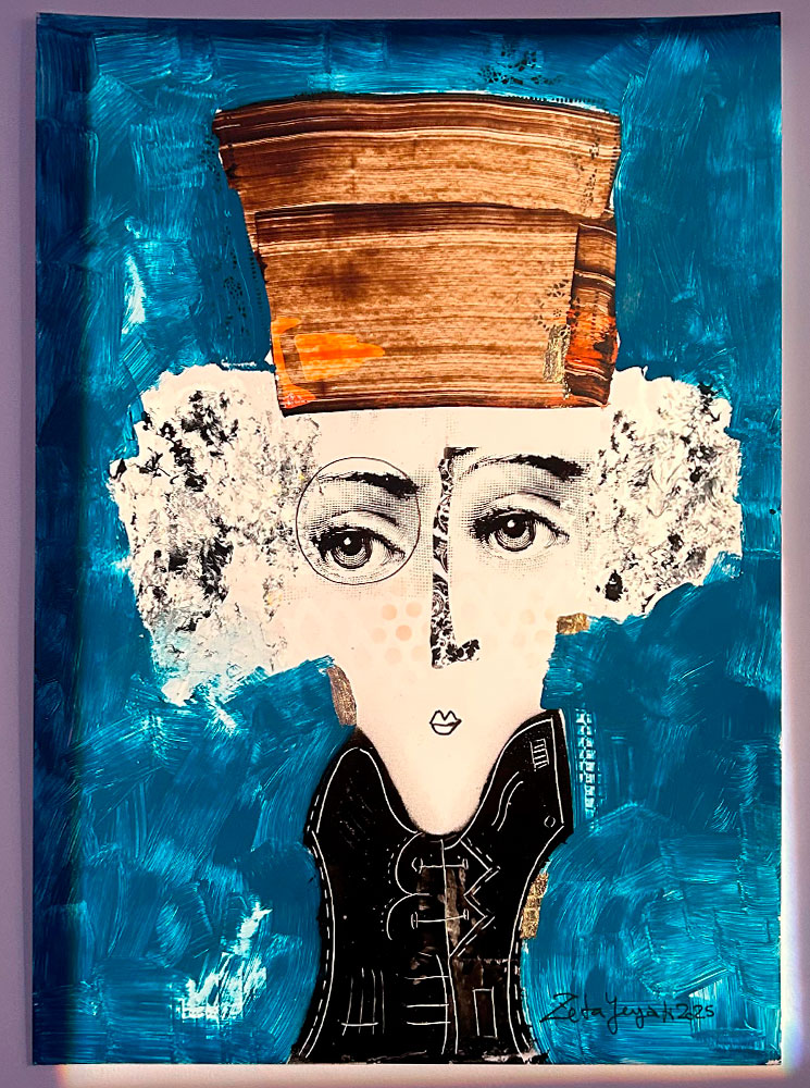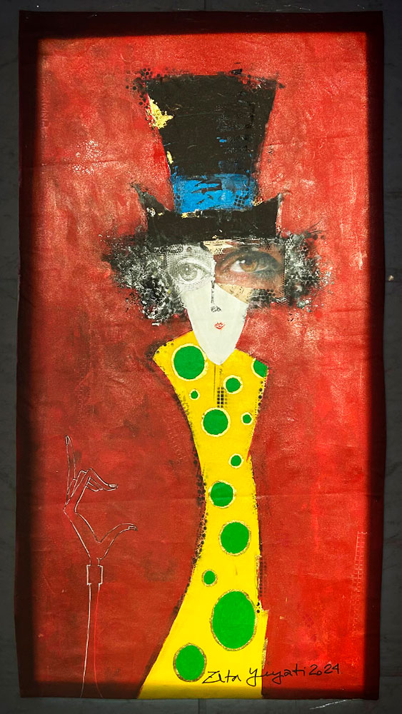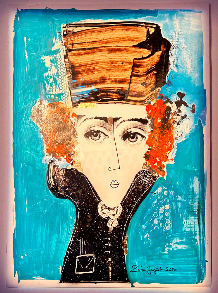 Por su lado, Yeyati, crea escenas que flotan entre lo astrológico y lo mágico. Magos, gatos habitan sus obras como si vinieran de otro plano. Sus gatos no son domésticos, son símbolos, guardianes de lo oculto y sus magos no predicen, sino que observan y reflejan el misterio del cosmos