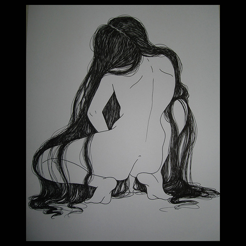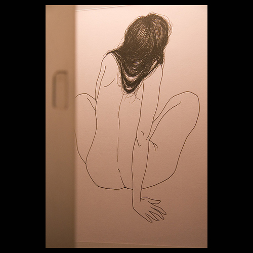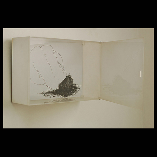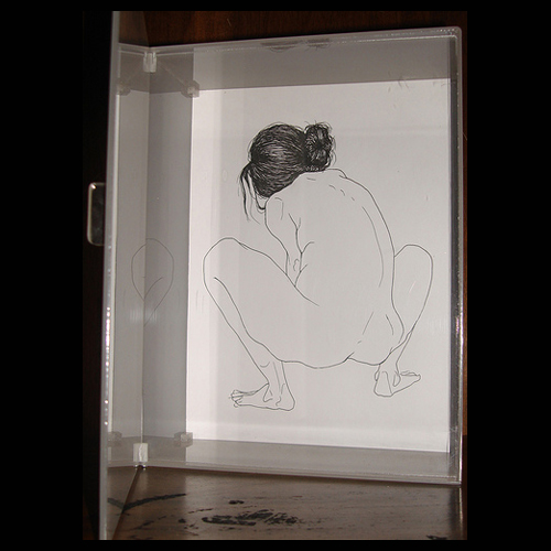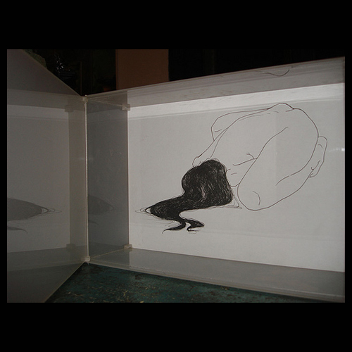 Dibujos a tinta sobre papel en cajas de acrílico