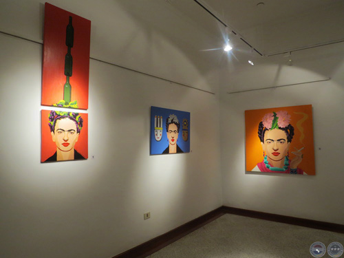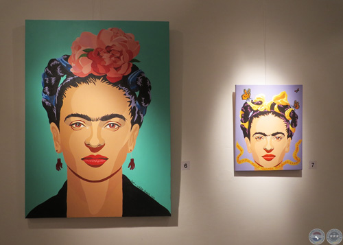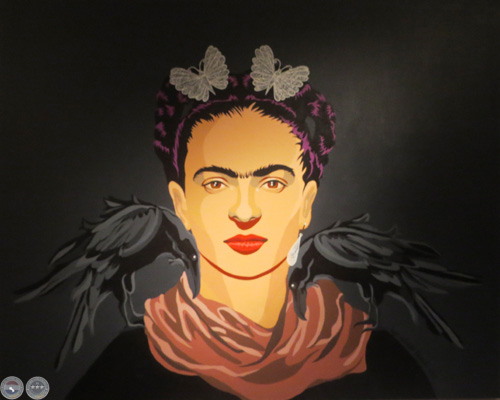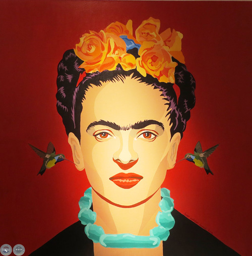 La muestra está compuesta principalmente por pinturas donde el rostro de Frida Kahlo es recreado en una paleta de colores vibrantes y con ciertos agregados. La imagen pictórica, si bien está trabajada en una técnica tradicional como es el acrílico, simula el efecto del dibujo vectorial que se consigue con los programas de ilustración digital y le confiere un estilo particular a las obras. Además de las pinturas, también pueden apreciarse una serie de dibujos en pequeño formato y estampaciones del rostro de Frida Kahlo en platos.