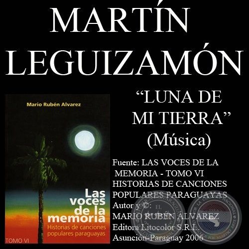 La historia personal del cantante y compositor MARTÍN LEGUIZAMÓN -oriundo de Capiatá, donde llegó al mundo el 29 de julio de 1930-, está llena de presencias y ausencias. Su itinerario de músico le llevara a componer la melodía de una canción herida por la añoranza. Buscando un motivo original, la luna seria esta vez el pretexto para soltar las amarras del techaga'u.