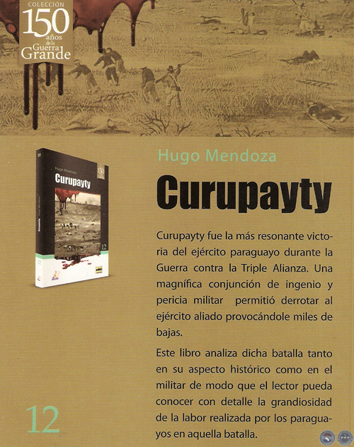 Mañana, domingo, aparecerá con el ejemplar de nuestro diario uno de los libros más esperados de la colección “A 150 años de la Guerra Grande: “Curupayty”, del historiador paraguayo Hugo Mendoza, quien describe todo lo referente a la mayor victoria paraguaya contra la Triple Alianza.