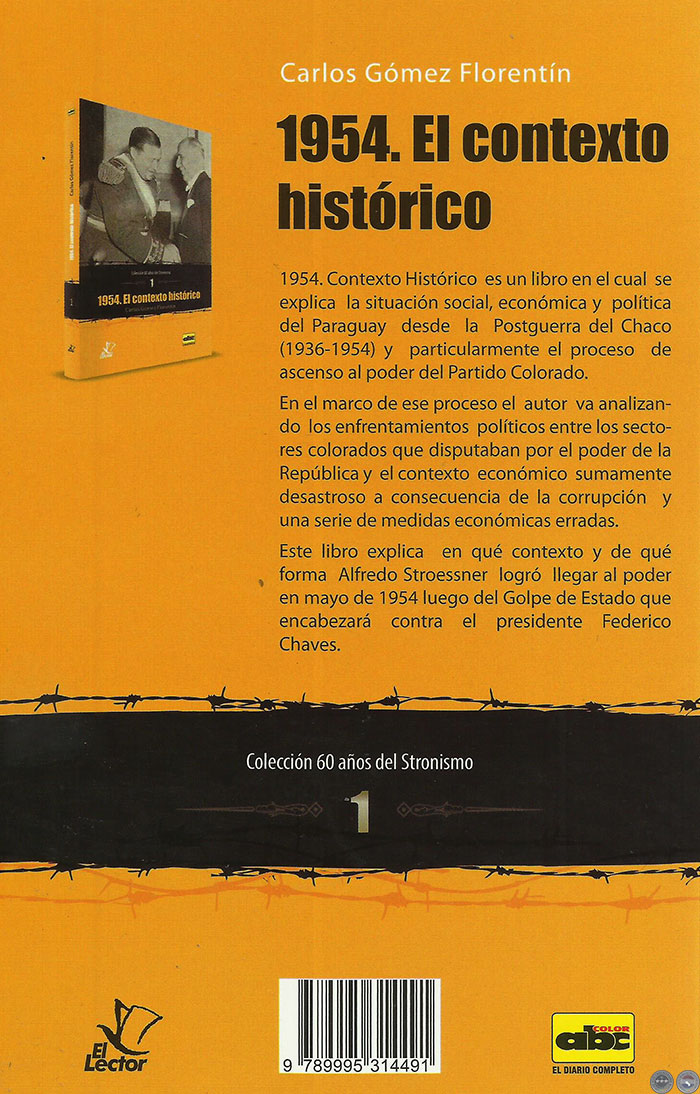 Este volumen inicial de esta nueva colección de El Lector tiene por objeto hacer un recuento del contexto histórico en el cual Stroessner llegó al poder en lo que se convertiría en la dictadura más prolongada de la historia del Paraguay. En particular, se trata de indagar sobre los factores internos que dieron origen al régimen de Alfredo Stroessner. Si bien esta distinción responde a una división del trabajo entre los autores, otro volumen se encargará de presentar el contexto internacional en el que ascendió Stroessner, cabe destacar que los factores internos pesaron mucho más en el período inmediatamente anterior a 1954. Si eventos domésticos hicieron posible que Stroessner llegase al poder, el contexto internacional resultó mucho más decisivo en la consolidación del régimen autoritario que comenzó en mayo de 1954.