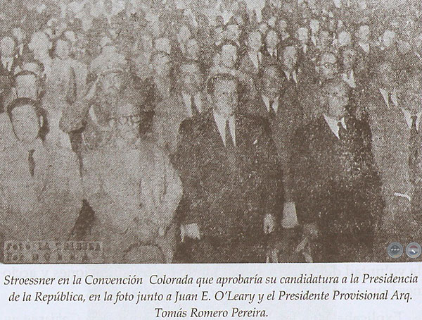 Finalmente el autor describe las maniobras del general Stroessner para lograr su acceso al mando con legitimidad y no inmediatamente luego del Golpe de Estado que encabezó para derrocar al presidente Federico Chaves, en mayo de 1954. En este marco explicativo, Carlos Gómez logra con claridad demostrar las características originarias de la "modernización conservadora" que desarrollaría el stronismo como programa de gobierno durante más de tres décadas.