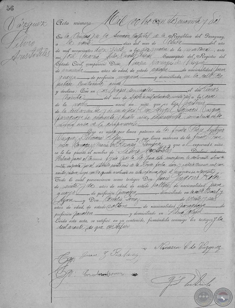 -. Silvio A. Vázquez nació en la Asunción en 1896.