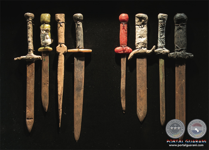Tengo ante mí medio centenar de Takumbú kysé. Armas clandestinas. Requisadas, decomisadas. Exhiben las huellas de crímenes cometidos o el presagio de otros. Cuchillos. No los puedo tocar. Su sola representación me basta. Recorro una y otra vez cada imagen, cada historia. Son objetos improvisados, urgentes, precarios, que no conocen de ergonomía en el mango ni metal noble en la hoja, cuando es hoja. Son materia promiscua, como el sitio donde han sido fabricados.