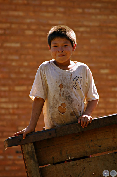 HIJO DE CACIQUE ACHÉ APUNTANDO LA FLECHA