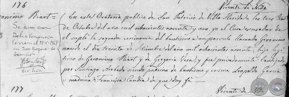 GERÓNIMO RIART es natural de Villa Florida. Nació en el año 1890.