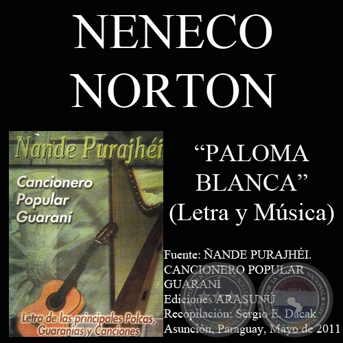 Letras: Nde ratypykua/ Che kamba resa jajai/ Canción a Villa Florida/ Recuerdos de Ypacaraí/ Mis noches sin ti/ Virginia/ Serenata/ Nde resa kuarahy’âme/ Novia querida/ Ne porâ che Paraguay/ Mi dicha lejana/ A mi pueblito Escobar/ Ángel de la sierra/ Chipera Luque/ Burrerita/ Kuña guapa/ Che renda alazán/ Recuerdos de ayer/ Reservista purahéi/ Che roga/ Cerro Corá/ Nde rendape aju/ Panambi verá/ Causa ne ñañá/ Tupâsy Ka'akupépe/ Flor de Pilar/ Acosta Ñu/ Minero sapukái/ Villarrica/ Tupâsy del campo/ Barcino kolí/ Asunción del Paraguay/ El arriero/ Josefina/ Peregrino trovador/ Mborayhu asy/ Soy de la Chacarina/ Apytávo che añomi/ Felicidades/ Mokôi güyra'í/ Vapor cué/ Noches del Paraguay/ Itapúa poty/ Tapyy ha’eño/ Jasy morotî/ Paloma blanca/ Buscándote/ Lejanía/ Renacerá el Paraguay/ Mi oración azul/ Así canta mi patria/ Lucerito Alba/ Galopera/ Bravo Paraguay/ Mitâkuñami/ Asunción/ Virgencita de Caacupé/ Che la reina/ Adiós che parahe kue/ Bajo el cielo del Paraguay/ Bahía Negra poty/ Ñemongetá okára/ Mi paisanita/ Mariposa parâmi/ Golondrina fugitiva/ Mi patria soñada/ María Escobar/ Florecita de mi cielo/ Oda pasional/ Alma vibrante/ Nendivénte/ Musiqueada jazmín guype/ Peregrino trovador/ Tardes asuncenas/ No me olvides/ India/ 6 de enero/ Palomita mensajera/ Muy cerca de ti/ Imposible, imposible/ Noches en el corazón/Por tu gracia angelical/ Ensueño de claro lunar/ Paraguaya rojhacjhú/ Máva ykére pa reimẽ/ Floripamí/ Che pyjharé mombyry/ La carreta/ Así canta mi patria/ Vergel luqueño/ Marineritos de mi patria/ Es tan lindo quererte/ Che maitei/ Saudade/ Oración a mi amada / Che pochyma nendivé.