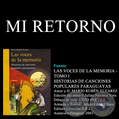 A veces el poeta se transforma en otro. Como puede mejorar su imaginación a la medida de sus deseos, se ubica en la posible experiencia de su semejante y, desde allí, a partir de algunos datos concretos, construye su obra. Esto es lo que sucedió con Pedro Sosa, cuyo nombre artístico es Carlos Sosa (nacido el 29 de abril de 1926 en el barrio Trinidad de la capital, y fallecido el 10 de junio de 1990 en Asunción) al escribir y componer "Mi retorno".